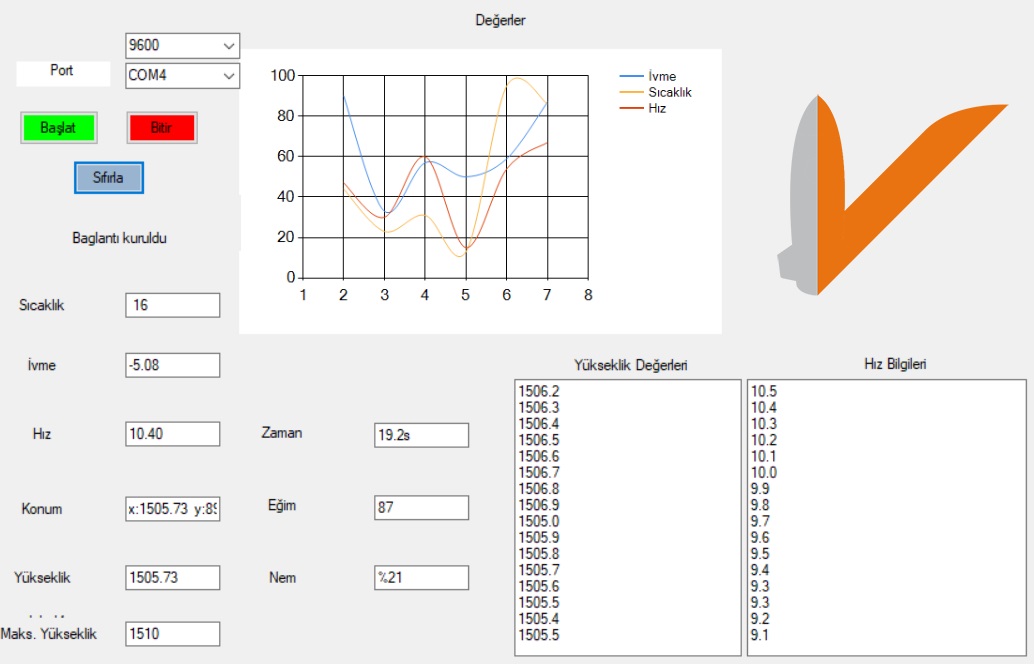 With the communication terminal and telemetry program we have built, we can establish a connection between both our rocket and our satellite, and send and receive data.